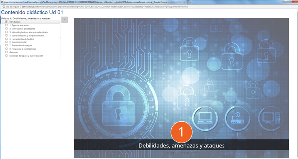 Cada unidad didáctica posee un contenido didáctico con los contenidos teóricos de la unidad.